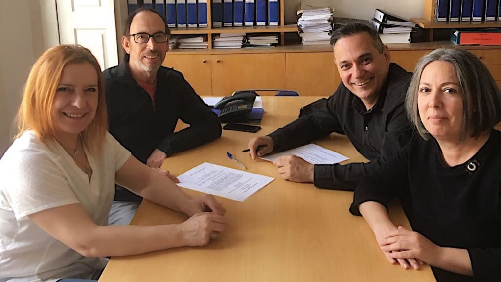 O diretor executivo da SP Escola de Teatro, Ivam Cabral (à dir.), com representantes da Esap. Foto: Divulgação