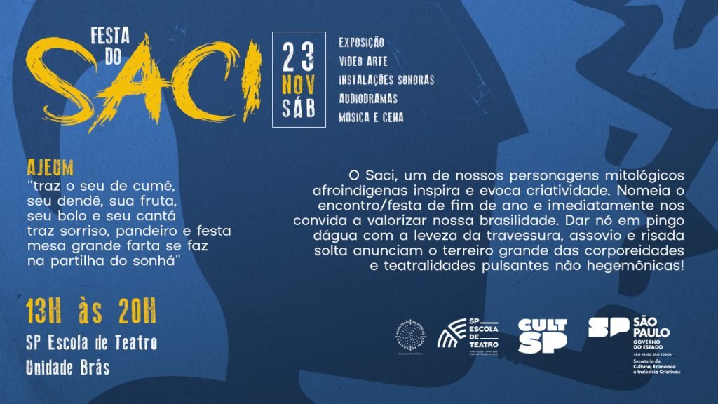 Acontece amanhã (23) na unidade Brás da SP Escola de Teatro – Centro de Formação das Artes do Palco a Festa do Saci, evento encabeçado por Tâmara David, coordenadora do curso de Sonoplastia e que conta com os docentes e estudantes do curso de Sonoplastia – e também estudantes e docentes das demais sete linhas de estudo.