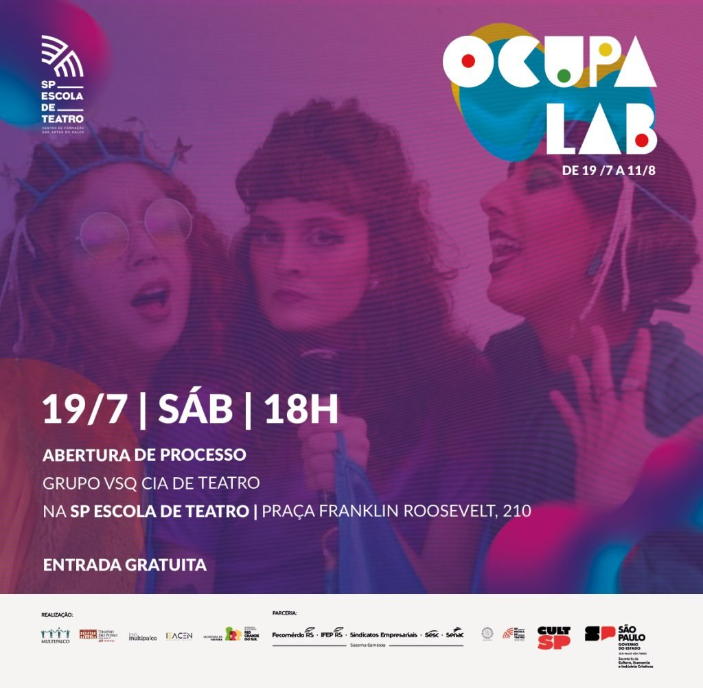 A atividade final da residência do Grupo VSQ na SP Escola de Teatro será aberta ao público. No dia 19 de julho, às 18h, eles fazem uma abertura de experimento. O público pode garantir os ingressos gratuitos 1h antes da sessão.