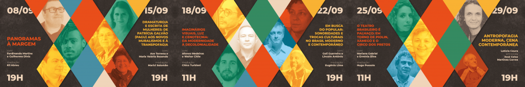 Assim, no primeiro encontro o professor Ferdinando Martins (ECA/USP) e o crítico mineiro Guilherme Diniz discutem o teatro ao mesmo tempo como inspiração e ausência na Semana, e ainda a emergência da cena negra nas décadas seguintes, como acontecimentos anunciados mas não abraçados em 1922. Na segunda mesa, mediada pela dramaturga Marici Salomão, a conversa será em torno da escrita de mulheres. A premiada escritora Maria Valéria Rezende fará um relato da convivência, em Santos, com Patrícia Galvão (Pagu) e seu lugar entre os modernos. A dramaturga Ave Terrena fala sobre sua pesquisa em torno do muralismo literário, inspirada em Oswald de Andrade e os artistas mexicanos, além de um conceito emergente nos nossos dias, parelho à antropofagia e realocado junto às questões de gênero: a transpofagia.