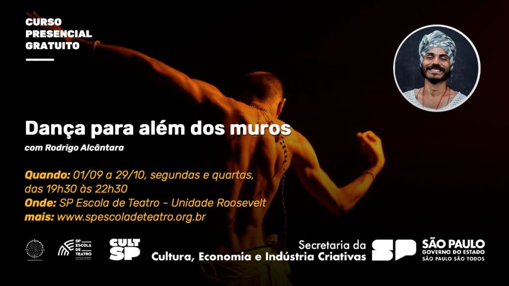 Estão abertas até 27 de agosto as inscrições para o curso de extensão gratuito “Dança para além dos muros”, a ser ministrado por Rodrigo Alcântara.