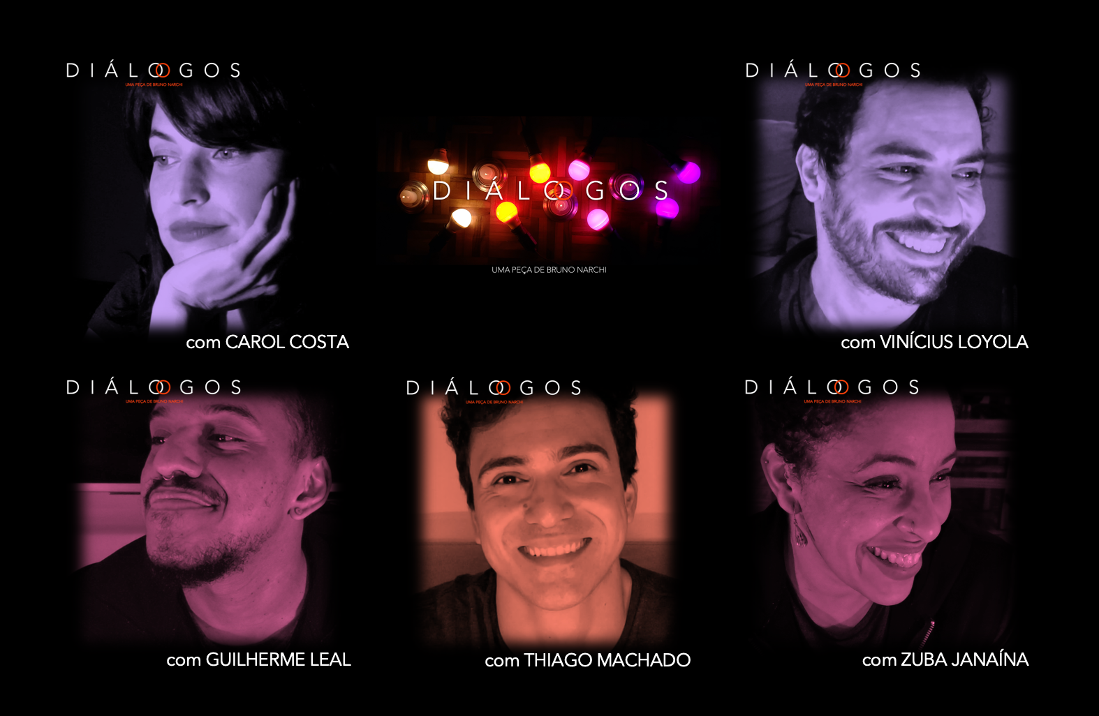 Na versão digital de Diálogos, uma única câmera, guiada por Bruno, faz alusão aos olhos do espectador, que são colocados dentro da ação. Entre encontros e desencontros, os atores se revezam em diferentes cenas e números musicais, nos aproximando cada vez mais de nós mesmos. Um projeto completo, que une o audiovisual, a internet e a experiência teatral, acessível para todo o Brasil.