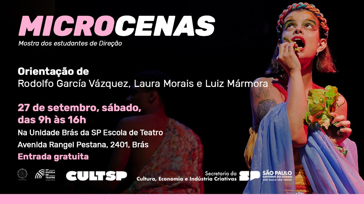 Acontece neste sábado (27) na unidade Brás da SP Escola de Teatro – Centro de Formação das Artes do Palco, das 9h às 16h, o primeiro dia da Mostra de Microcenas do segundo semestre de 2025.