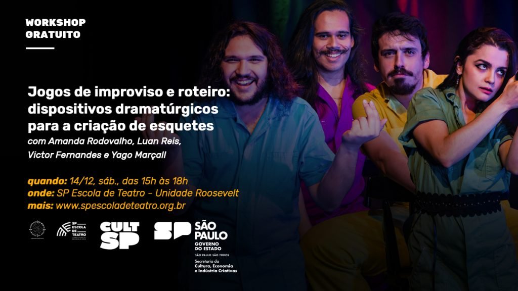 Estão abertas até 11 de dezembro as inscrições para o workshop presencial e gratuito “Jogos de improviso e roteiro: dispositivos dramatúrgicos para a criação de esquetes”, ministrado por integrantes da trupe “Intrusos na Comédia”.