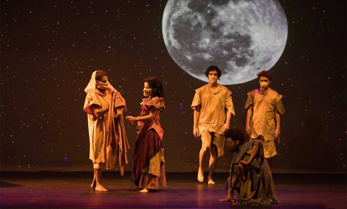 Nova peça tem atores com máscaras adaptadas para falar sobre sociedade matriarcal