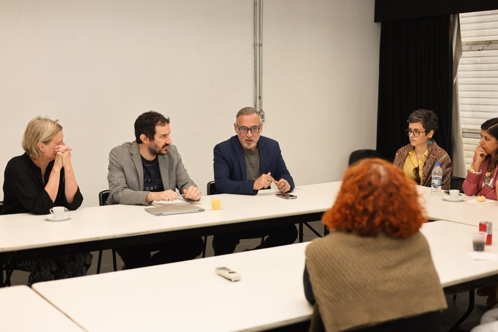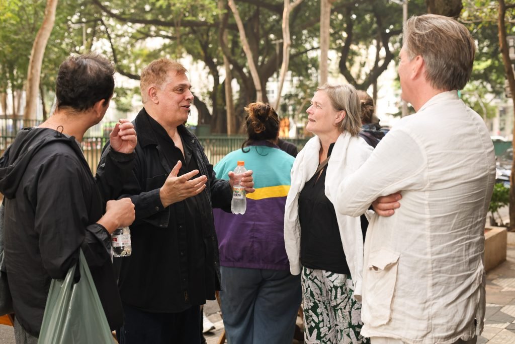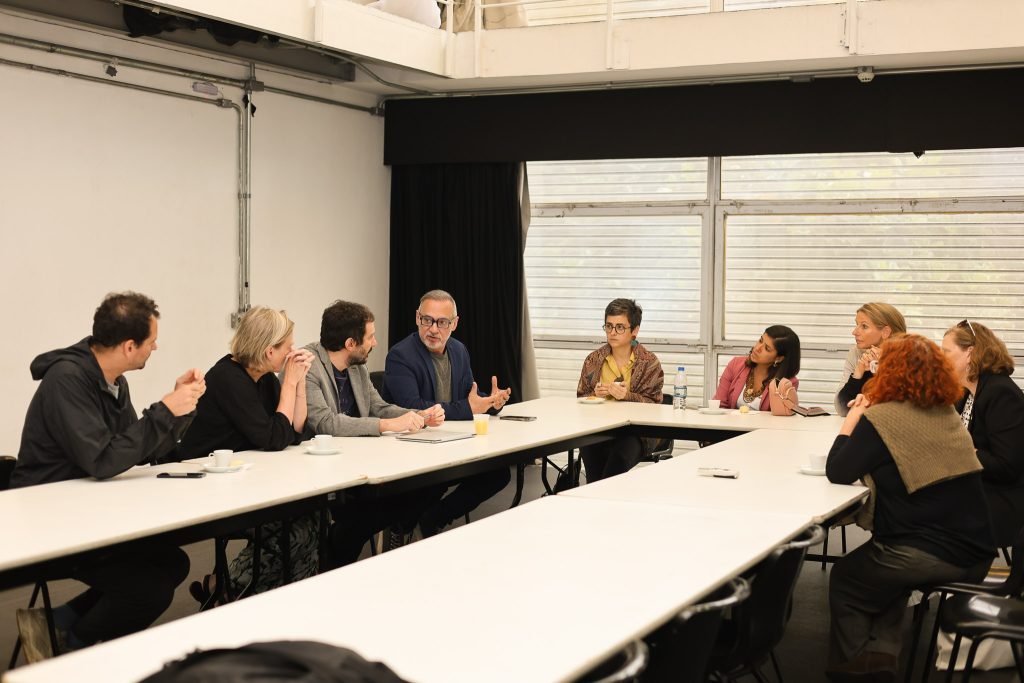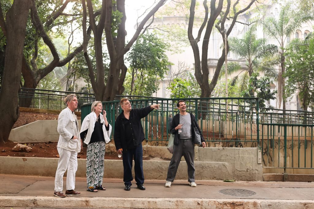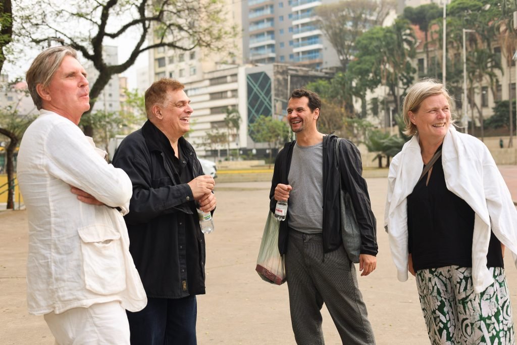 Ivam Cabral, diretor-executivo da SP Escola de Teatro, Beth Lopes, coordenadora pedagógica, e Marcio Aquiles, responsável pelos projetos internacionais e parcerias, receberam a comitiva que era composta por Marianne Skjulhaug, reitora da KHiO – Oslo National Academy of the Arts, e Manuel Pelmuş, pró-reitor de pesquisa da KHiO – Oslo National Academy of the Arts, entre outros acadêmicos de universidades como Kristiania University College, Oslo Metropolitan University e University of Oslo.