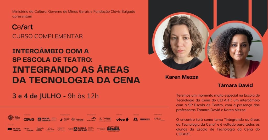 Nos dias 3 e 4 de julho, a SP Escola de Teatro – Centro de Formação das Artes do Palco, instituição da Secretaria da Cultura, Economia e Indústria Criativas do Estado de São Paulo, promove um intercâmbio com o Centro de Formação Artística e Tecnológica (Cefart) da Fundação Clóvis Salgado, em Belo Horizonte.