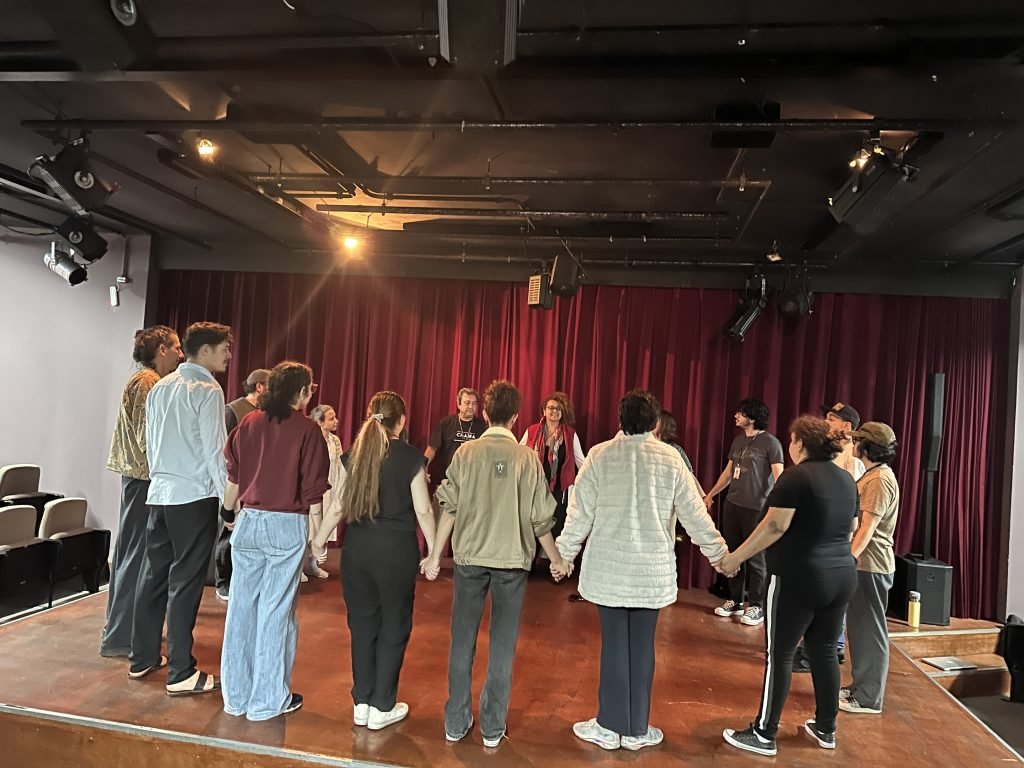 Na ocasião, Tâmara David e Karen Mezza desenvolveram dois dias de trabalhos voltados aos estudantes de cenotécnica, iluminação, sonoplastia e figurino abordando processo criativo e dinâmicas que auxiliam o trabalho cooperativo em grupo à partir dos textos “Vaga Carnê” de Grace Passô e “Dois Pássaros” de Leonardo Moreira.