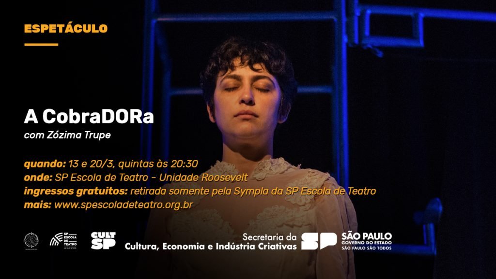 A Zózima Trupe se apresenta nos dias 13 e 20 de março na unidade Roosevelt da SP Escola de Teatro com o espetáculo “A CobraDORa”.
