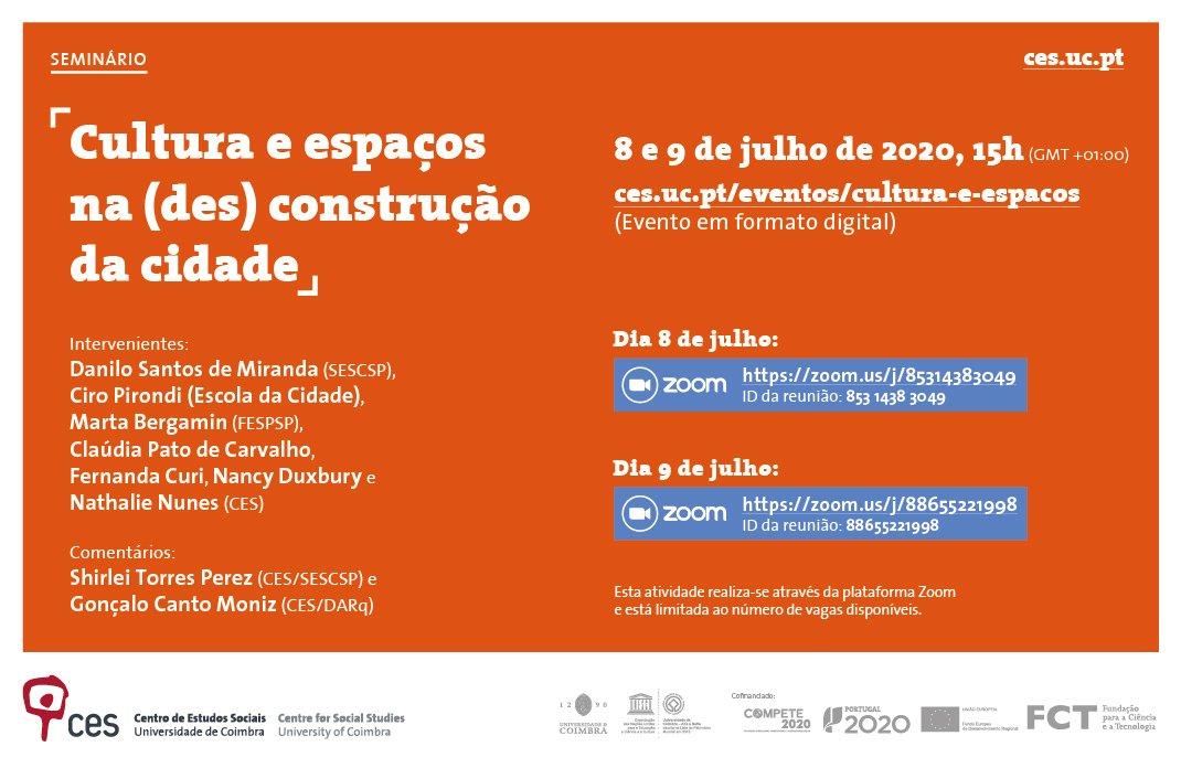 O Centro de Estudos Sociais, da Universidade de Coimbra, promove em julho, nos dias 8 e 9, o seminário Cultura e espaços na (des)construção da cidade.