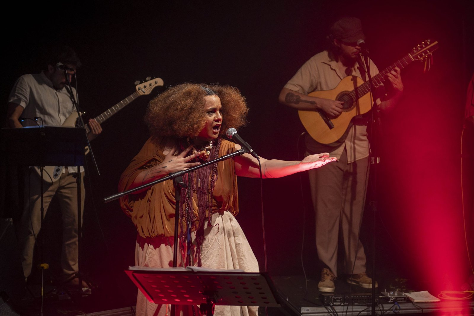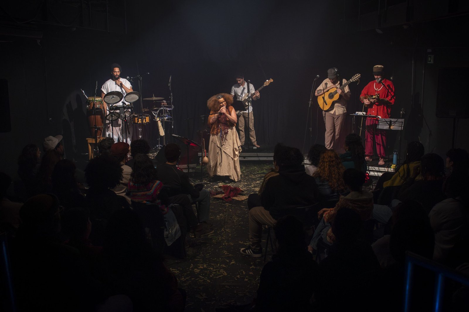 Tâmara David (cantora, compositora e também coordenadora do curso de Sonoplastia da Escola) e a banda Falange Cabocla apresentaram o incrível espetáculo “Cantos D’Alma Negra (Entre Sonhos, Sambas e Lutas)”.
